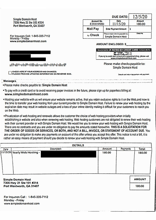 ASCP members have recently shared instances of receiving unsolicited "offers" from various web hosting companies that appear as invoices and imply that members need to pay a certain dollar amount to maintain their website listing as outlined in the news story at www.abmp.com/updates/news/web-hosting-scam-targets-massage-therapists.